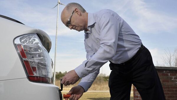 "It's no more difficult to get around in this hybrid because [it also has an internal combustion engine] but you do find yourself trolling for a plug," Mr. Denney says of the conservation authority's Prius, which can be charged in a standard 110V outlet. "I can usually find a place to plug in, but that's often in a municipal office or underground parking lot where I happen to find an electrical outlet."