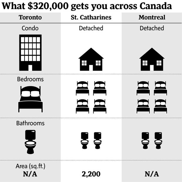 If you have $320,000 in St. Catharines, you can buy a 2,200-square-foot, four-bedroom, two-bath, two-storey detached house for $319,900