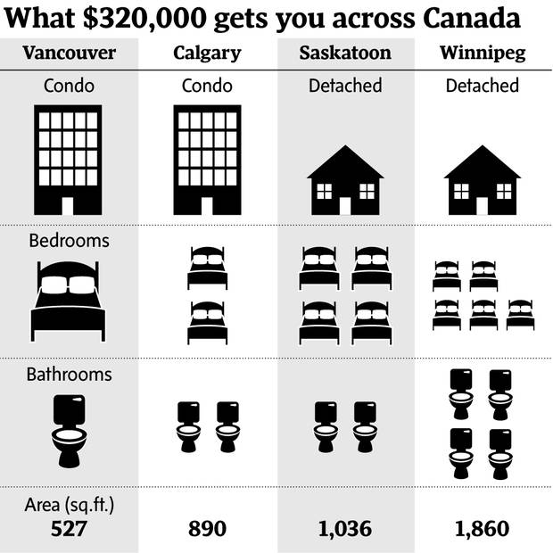 If you have $320,000 in Saskatoon, you can buy a four-bedroom, two-bath, 1,036-square-foot bungalow listed at $319,900