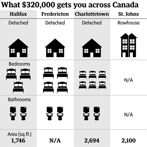 If you have $320,000 in St. John's, you can buy a four-bedroom, two-bath bungalow house listed at $319,900