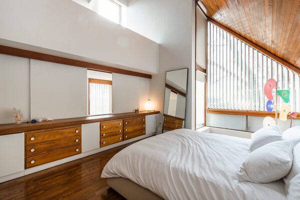 A mid-century Modern classic that represents a distinctive departure from the traditional greystone Victorians on a hilly street in tony Westmount. Built by Mr. Dimakopoulos as his residence in 1967, the house boasts a dramatically pitched roof, big cedar-framed bay windows and a side entrance.