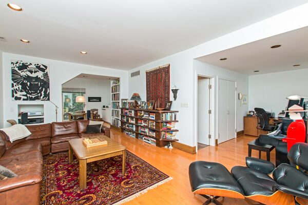 The interior is unremarkable and dated. “It’s a house that’s all white inside, oak trim baseboards and some black accents, very simplistic in its approach,” Dr. Derby says. “It would have been considered an advanced design for the 1970s.”