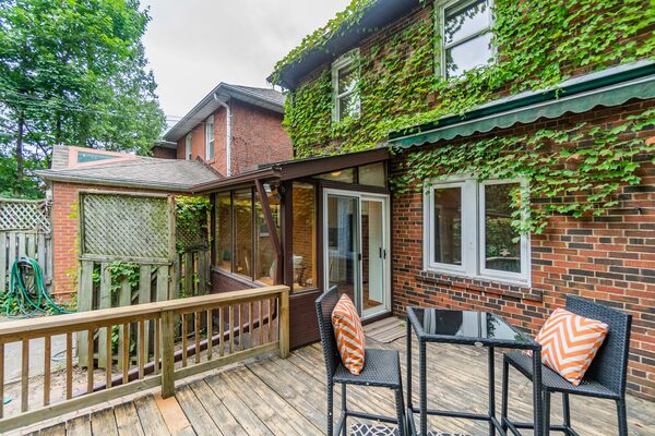 In the 1930s, this brick structure on a 25-by-119-foot lot was given a traditional living room with a fireplace and a formal dining room, as well as a separate kitchen with breakfast area with a skylight and a walkout to a private deck, backyard and garage.
