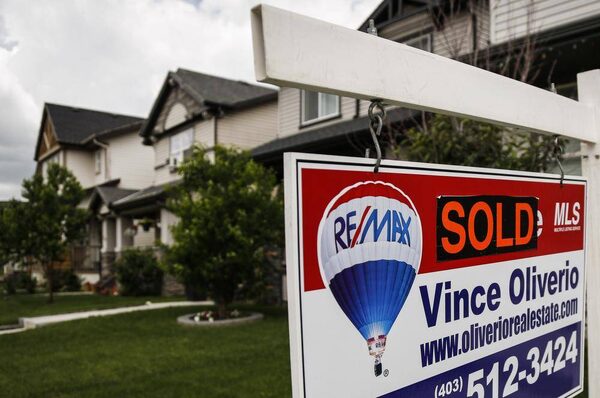 A real estate sign hangs in front of a Calgary, Alta., home in June.Jeff McIntosh/The Globe and Mail