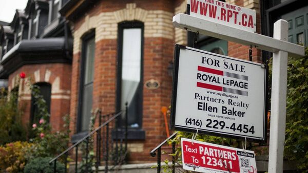 A "For Sale" sign is posted outside of at Toronto townhome Tuesday Oct. 25, 2011.Tim Fraser