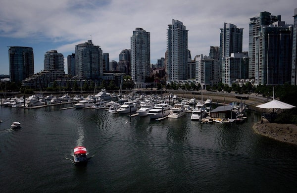 A water taxi travels on False Creek as boats are moored in a marina near Yaletown condo towers, in Vancouver, on July 13, 2014.DARRYL DYCK/The Canadian Press