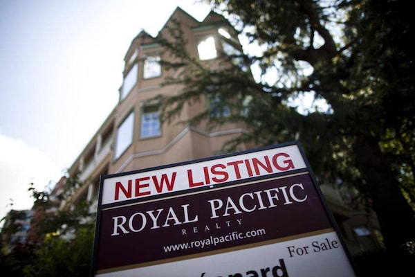 A for-sale sign rests on the lawn of a condo building in downtown Vancouver, Thursday, Aug. 2, 2012.Rafal Gerszak/The Globe and Mail