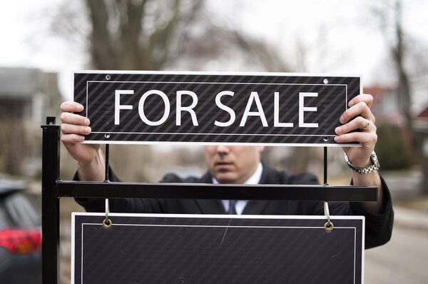 A broker puts up a For Sale sign before an open house in Toronto in this 2015 file photo.Darren Calabrese/The Globe and Mail