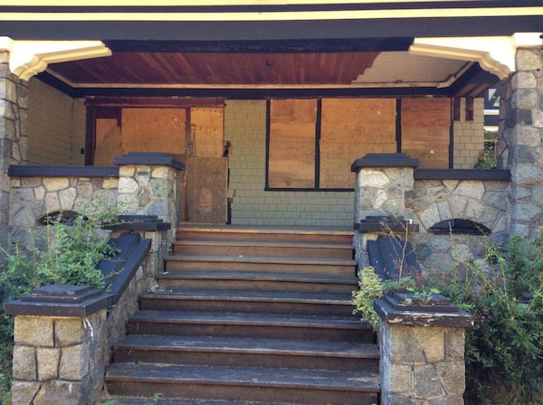 A boarded up house on Laurier Street at Granville, in the Vancouver neighbourhood of Shaughnessy.