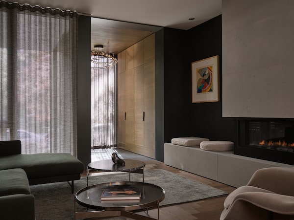Speaking of measurements, the couple have lived in four other places together and so have amassed quite an impressive art collection, from huge canvases to serigraphs. So, while Post does not usually manage placement, they did so here: “Their artwork was photographed and modelled to scale in SketchUp,” says Ms. Apostolou, “and we had the paintings located in the rooms that they’re sitting in now … and they would call Emmeily sometimes and say ‘you know what, I have a new thought about where to put [that one].’”