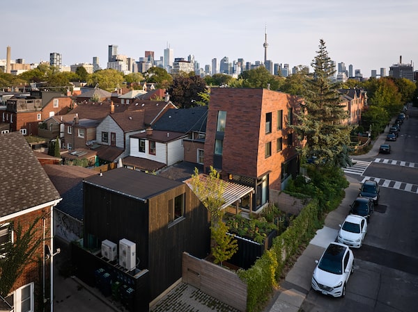 The raspberries in question come not from a sunny rooftop this time, but from a corner-lot garden made possible by entering into an easement with the city to “basically double the width of [the] garden.” And it’s not just a garden: here, the semi-retired Mr. Goodman and Ms. Levitt (LGA was founded in 1989) have created a trellis-covered, inner-city oasis with a shipping-container sauna, an outdoor dining area, and a heated walkway between the wedgelike, three-storey building fronting Ulster Street and the two-storey laneway house situated off Lippincott Street.