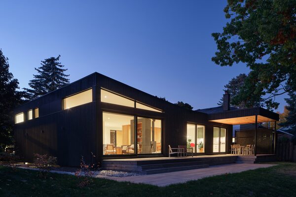 Perhaps that’s why early plans calling for a “skinny farmhouse” with a gabled roof and a balconied second floor were scrapped. Who needs two floors when there’re only two or three people knocking about? Also, with a backyard beside a woodlot and a wide deck to monitor users of Ms. David’s pollinator garden, who’d want to stay inside? (When they do stay in during colder months, the new construction means their bills are minimal; in 2022, they paid $1,100 for gas and $1,000 on electricity).