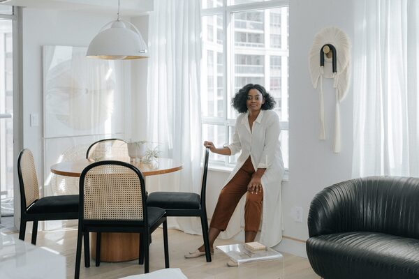 Late designer Nike Onile, photographed in her condo, the remodelling of which was completed in 2021. Ms. Onile, a rising star in the interior design world, died in July, 2023.Angie Choi/Angie Choi