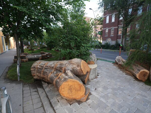 That man should know. His company, Bienenstock Natural Playgrounds – carvers and builders of exactly what you might think – has turned 200 metres of Parliament Street between Winchester and Carlton streets into a lush, leafy, sheltering playground for adults, kids and Hobbits alike … even Shambly Man and his mate if they’d just stop and smell the Saskatoon Serviceberry flowers. And the $300,000-plus it cost to install and maintain the 230 tonnes of material (until Sept. 11) all came from developers CentreCourt and Fitzrovia.