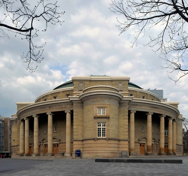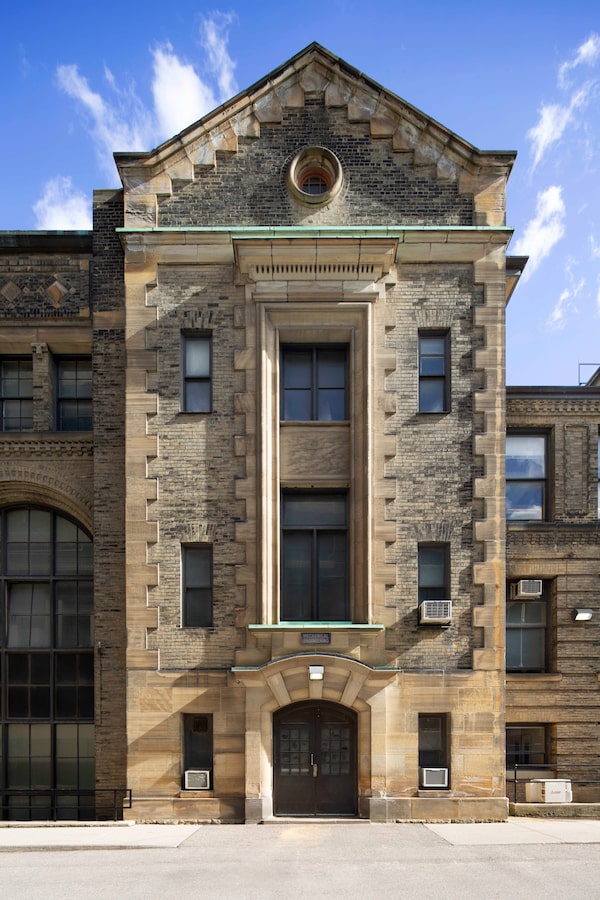 Compare that, however, to the domed pomposity of Convocation Hall, also by Mr. Darling (1905), where thoughts of inspiring movies such as Dead Poets Society come to mind. This incredible building, writes Mr. Winterton in the book, is “one of, if not the most, memorable designs the firm would produce.” As we walk toward it on a mild mid-November day, there is student activity and open doors, so we duck inside to admire the curved hallways and their quirky little doors, and the amazing ceiling of eight ribs that connect to a triumphant circular laylight.