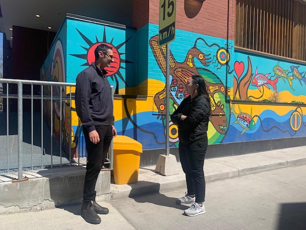 University of Toronto's School of Cities' Matti Siemiatycki, left, and former urban planner Candice Leung chat outside the Red Door.Dave LeBlanc/The Globe and Mail