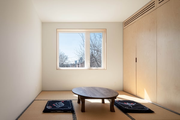 Ms. Jog, whose mother is Japanese, had discovered some years ago that a room on the third floor was almost the right size to hold six tatami mats, so her four-person family (there is a 13-year-old and an 11-year-old) had been enjoying those therapeutic benefits already. After a conversation with neighbours and friends Joanne Lam and Eric Martin, owners of architecture and interior design firm Picnic, it was decided that any renovation would have to include a room designed specifically for the mats … right down to the millimetre.