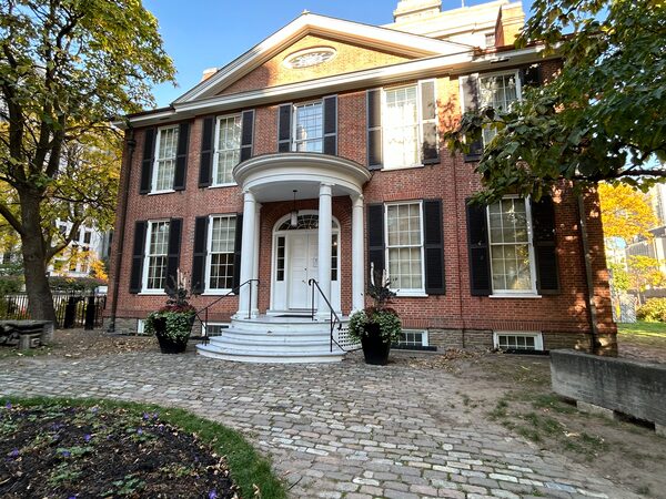 All very noble and completely necessary. But whether federal, provincial, city or privately owned, there is still a long way to go. Crossing the street to examine the city-owned Campbell House Museum (built 1822, 160 Queen St. W.), we note the uneven cobblestone right from the sidewalk, which would certainly trip up visually impaired people (and underlines that landscape architects should be involved as well). And while the front door is clearly not accessible, there is no signage to indicate what to do. The rear seems impenetrable as well, but a later visit to their website tells us a ramp to the backdoor is available.