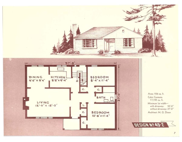 A sample from 67 Homes for Canadians, a pattern book published in 1947 by the Central Mortgage and Housing Corporation (later known as the Canadian Mortgage and Housing Corporation).CMHC
