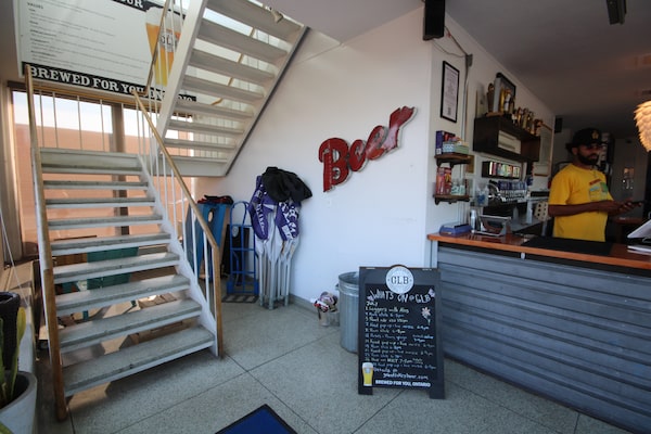 Today, while a few doors have been added and the office lobby is now a busy taproom and retail store, Great Lakes has left much of the original features intact, such as the staircase or portions of the “up and down” windows. And, unlike some companies, they know the history of their building.