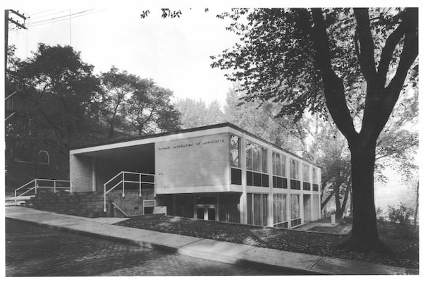 Parkin's 1954 design for the headquarters of the Ontario Association of Architects presents the building as one-storey at the front entrance.