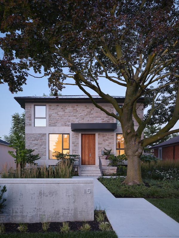 Designers Michael Fohring and Arancha González Bernardo of Odami have treated the façade of Erin Gano and Marcel Jakubovic's home in Clanton Park, Toronto, as if it were a sliding tile puzzle: shift one window that way, slide the canopy to the right.Doublespace Photography
