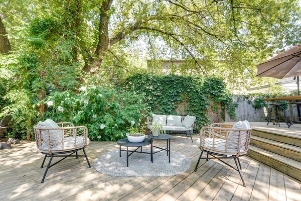 The shining star is the backyard in conjunction with the office. Although manicured, Ms. Mendes says there is still a sense that it is a woodland oasis. The multilevel deck, lounge spaces and even the open tiki bar allow for different areas to gather and socialize. “The amount of nature at our fingertips is really unrivalled,” she said.
