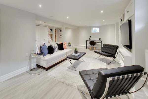 The basement has a recreation area and an extra bedroom with pot lights, plus a full bathroom.