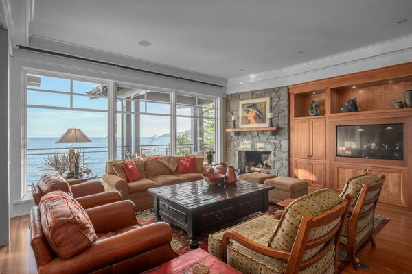 The design preserves vistas of the shore and the Pacific Ocean beyond for the Barrés while sheltering them from the homes on either side.360hometours.ca