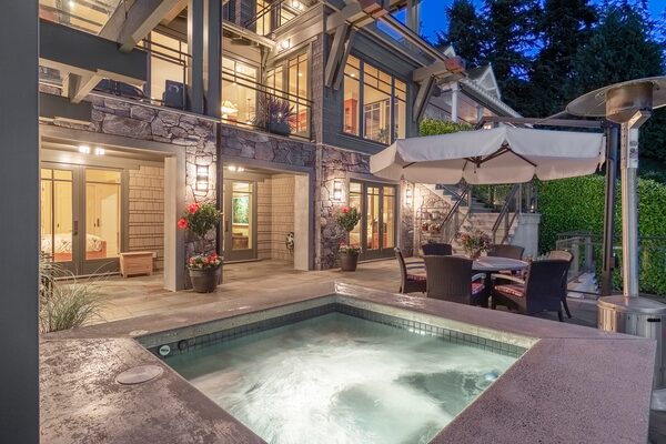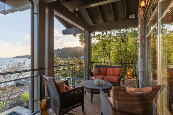 The lower deck has a Jacuzzi tub and stairs leading down to a beachside terrace.360hometours.ca