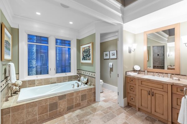 The ensuite bathroom has a large soaker tub and a walk-in steam shower.360hometours.ca