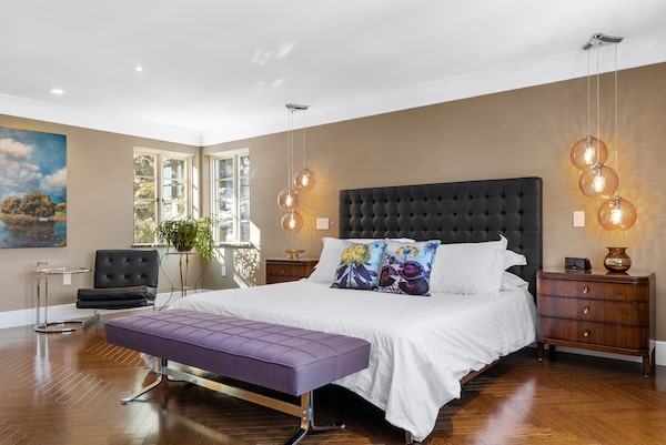The master suite features a massive wood feature wall.Andre McKenzie/Andre McKenzie/SilverHouse
