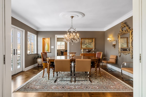 Mr. Holzheu’s favourite space is the den next to the kitchen. “This is where the man of the house would go and light a little fire in the fireplace, read The Wall Street Journal,” Mr. Holzheu said. “People talk about a man-cave; I go in there watch an old movie and have a cup of tea. It’s such a nice warm, calming room.” It’s also almost entirely intact; the wood panelling on the walls is original.