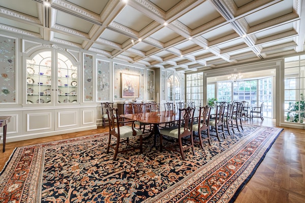 The Kolber’s Westmount home, across from Summit Woods, was equipped with a host’s every need: a chef’s kitchen with a breakfast room, updated four years ago; a butler’s pantry connecting the kitchen to the formal dining room for seamless catering; a 1,000-bottle wine cellar; and a media room.