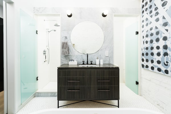The powder room is one of the home's most surprising spaces.Birdhouse Media