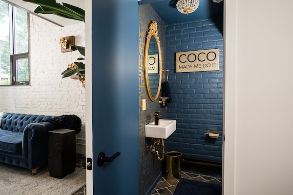 Once they saw the booth plans, they decided to unleash Mr. Briceland on the rest of the townhouse. The first taste of what’s to come is the powder room on the way to the living room.