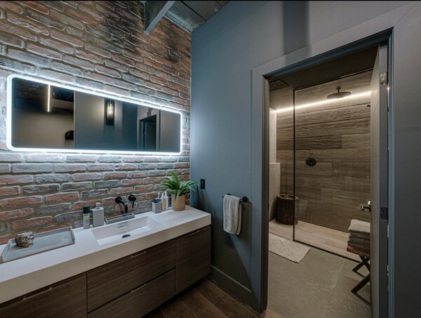 Throughout the space, the developer had used reclaimed brick to clad the walls. Mr. Snider drew on his skills as an artist to add more brick, which he distressed to replicate the grit and soot that gave the original its authentic appearance.