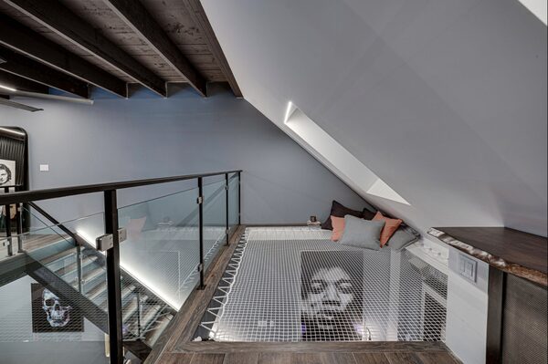 Mr. Snider added an 11-foot-by-20-foot platform to create a second mezzanine, which can be reached by a steel bridge from the bedroom area.