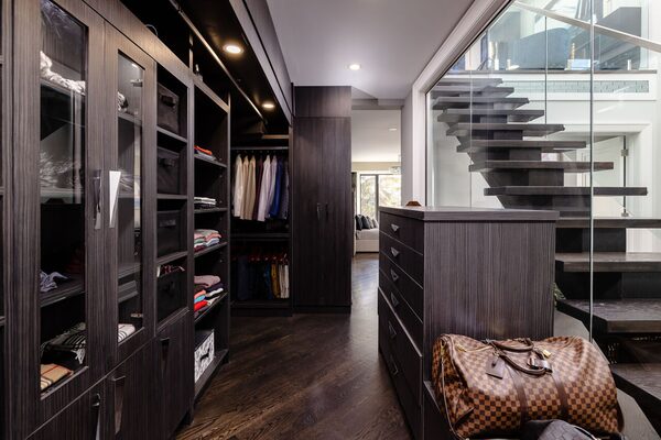 Mr. Bhagat loves to cook, so he had more input into planning the modern chef’s kitchen with sleek cabinets, double wall ovens and high-end appliances.