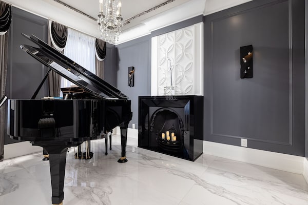“I wanted to put my grand piano there, under the medallion,” says Dr. D’Souza, who still loves to play music at the end of the day. All of my initial ideas about functionality and modern design went out the window.”