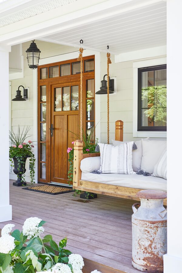 A large porch swing sits at the front of the house.Valerie Wilcox/Valerie Wilcox
