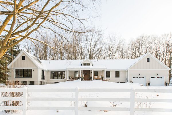 Local legend has it the site was originally one of the area’s early schoolhouses, but there’s no sign of that now. What you see coming up the drive is a long ranch-style bungalow framed by two wings with peaked roofs (one is the new extra-tall garage that Mr. Cian says can accommodate a car-stacker, an essential for the auto buffs of King Township) separated by a covered porch. There’s a big, beefy custom-made porch swing, too.