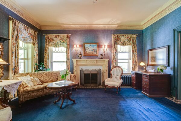 Creating the grand atmosphere in the stately home involved many hours spent antique shopping and visiting auctions for furniture that would fit with the historic residence. Designated a heritage home, the Broughs were careful to pick paint colours that would have existed at the time it was built.