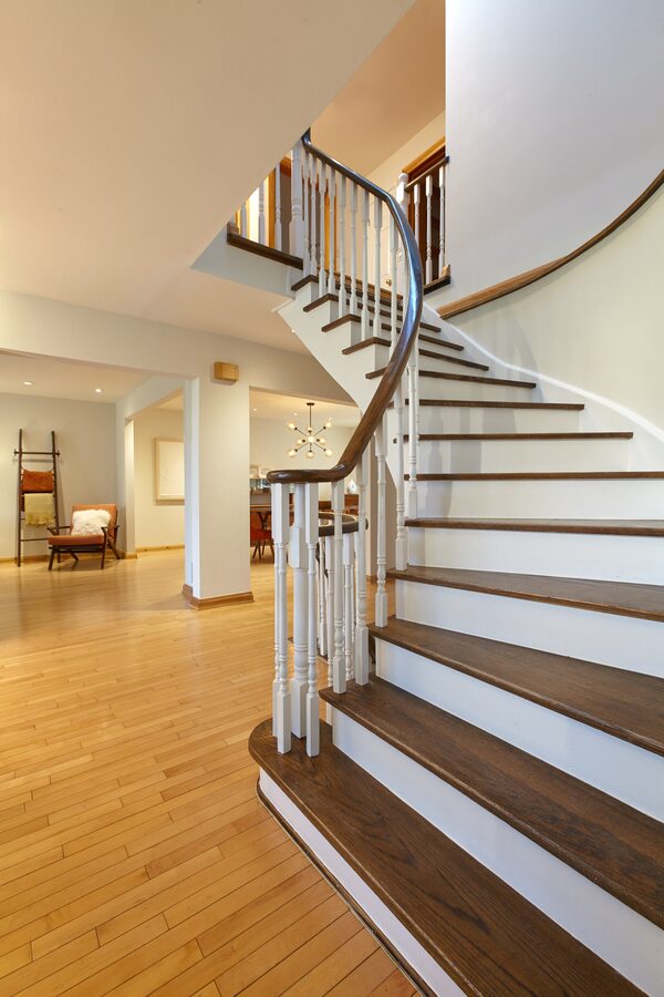 The staircase curves up to the second and third levels.J.Christopher Lawson