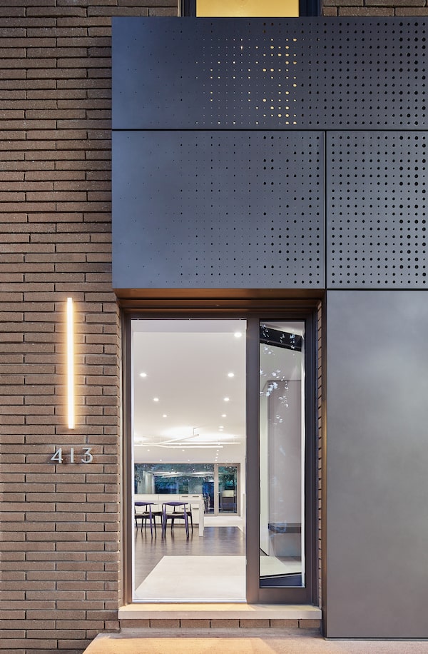 The front door has a mish-mash of 'very Toronto' angel bricks and a metal panel.Nanne Springer/Nanne Springer
