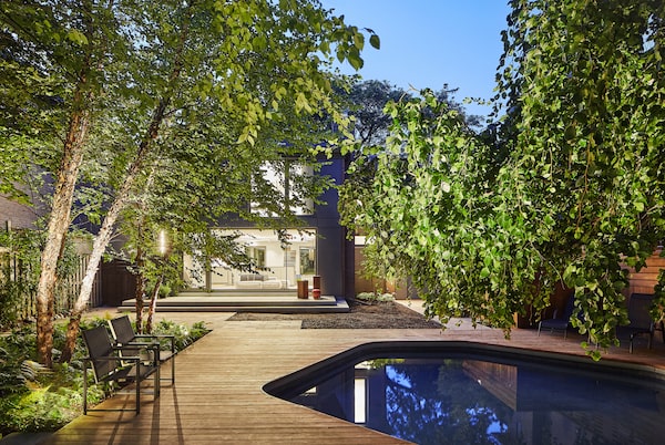The two women are gazing across the dark, still water at the massive weeping beech in Ms. Life’s backyard. On this hot, steamy night, the tree’s long branches look as though they’d like to stretch a little further and take a dip. “I didn’t want to leave my tree or my pool, so let’s see what we can do,” Ms. Life remembers thinking. So, in 2016, they got to work.