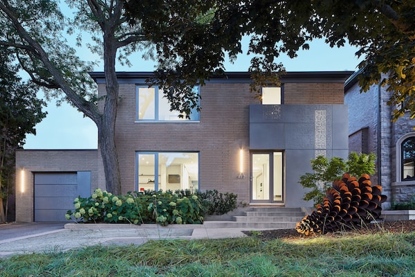 And speaking of teardowns, while this neighbourhood has seen many of the original dwellings fall so a ham-fisted faux chateaux can replace them, both client and architect agreed that the long and “very Toronto” orangey-yellow brick should stay, along with the roofline and the home’s radiant floors. To Ms. Rendely’s jeweller’s eye, however, a few windows had to be tweaked for symmetry’s sake, and the “willy-nilly” patch of angel brick near the front door had to be covered with something more finely crafted. Enter Hamilton-based metal panel manufacturer Sobotech, which Ms. Rendely had used before.
