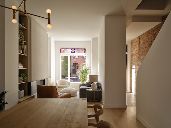 However, with a Roncesvalles-area façade as gorgeous as this one, Mr. Martire and Ms. Cannataro decided to tread lightly with their street-facing interventions. While windows are modern and energy-efficient, the couple took great pains to have the original stained glass transom windows restored – including the one over the front door that contains the street number – by Toronto’s EGD Glass Studio and then boxed and placed behind new windows.