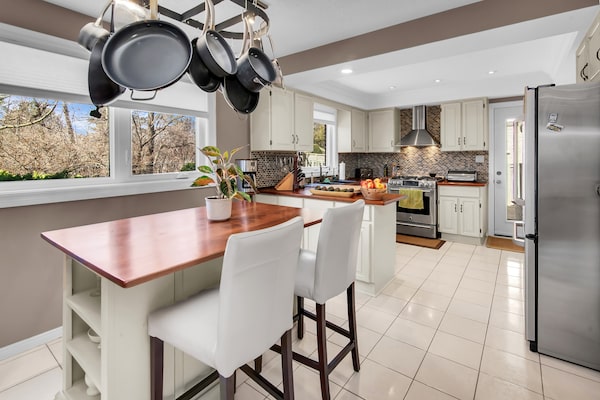 The furnace and windows have been updated. There are four bathrooms and an eat-in kitchen with an island, stainless steel appliances and a walk-in pantry.