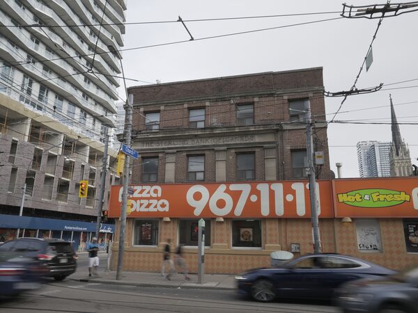 The former Stirling Bank of Canada building, designed in 1913 by John M. Lyle. A 52-storey tower will rise on this site, with the bank building retained in full.Dylan Authors
